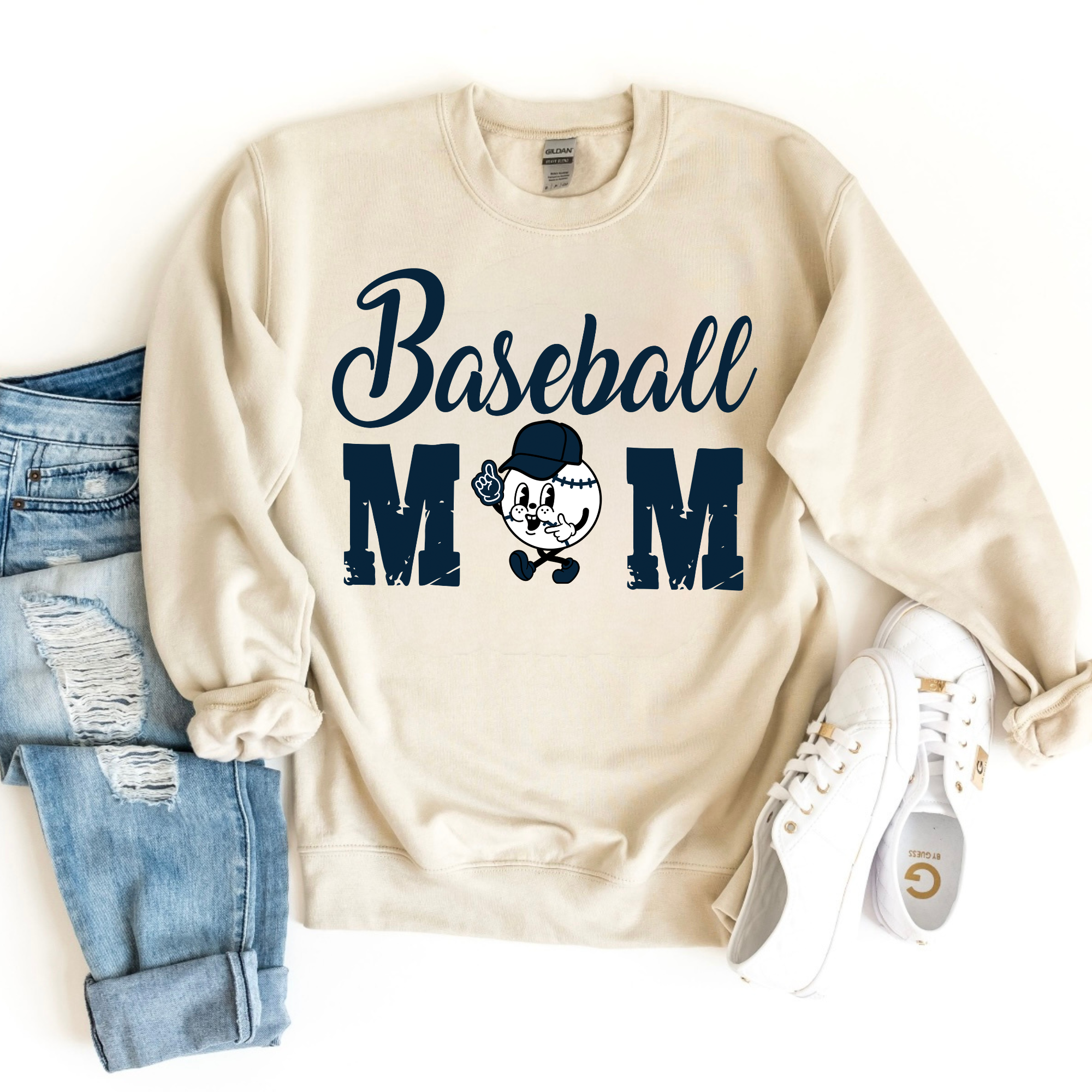 Baseball Mom Ballpark Queen Navy Font Top