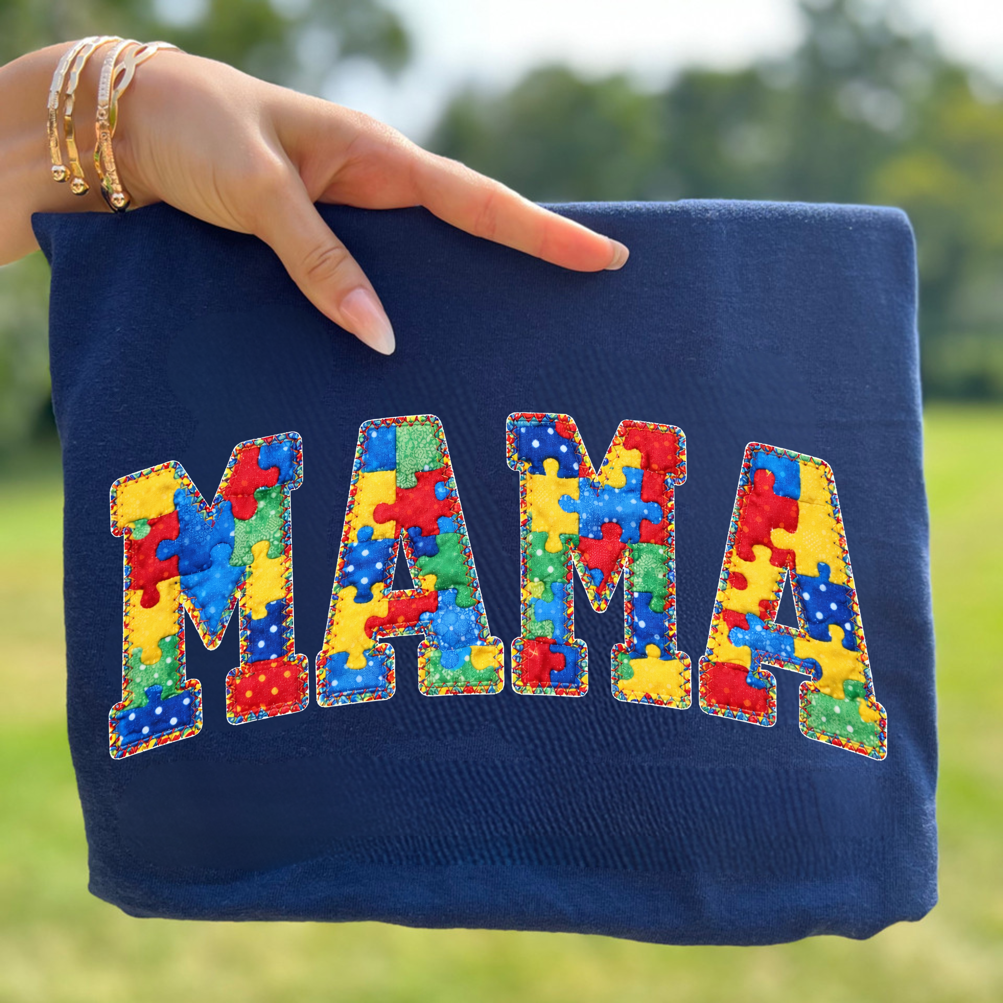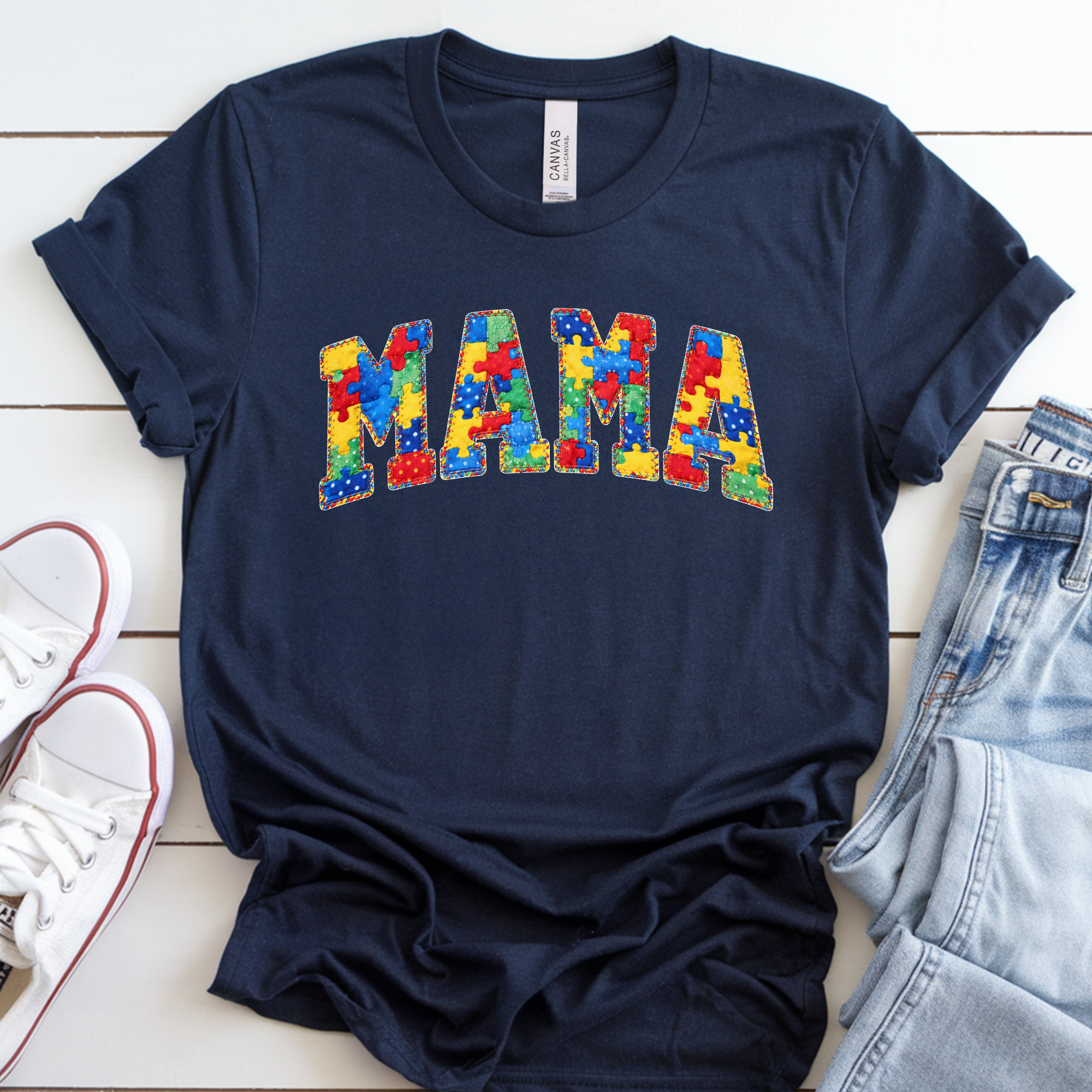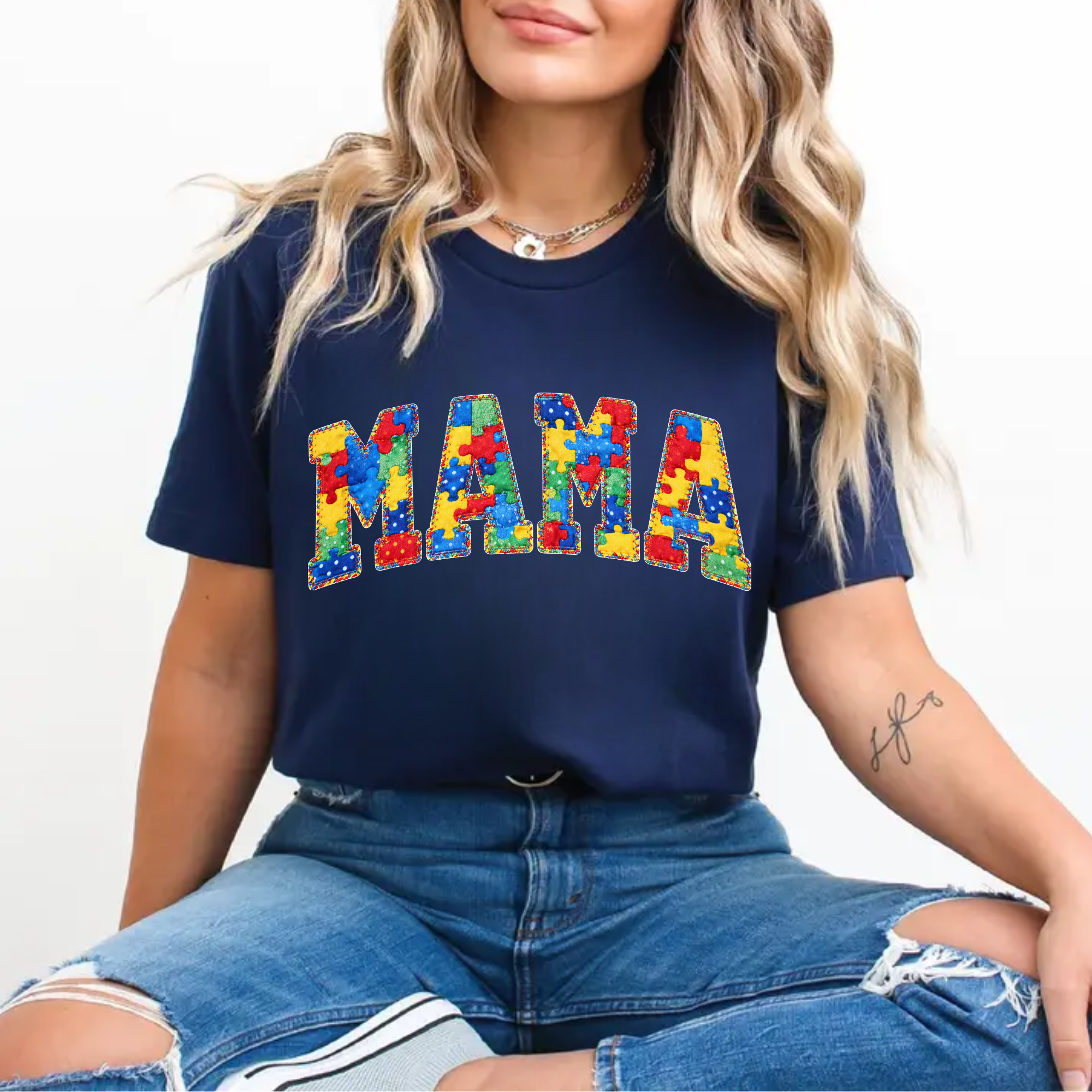 Autism Awareness Mama Puzzle Letter Graphic Top