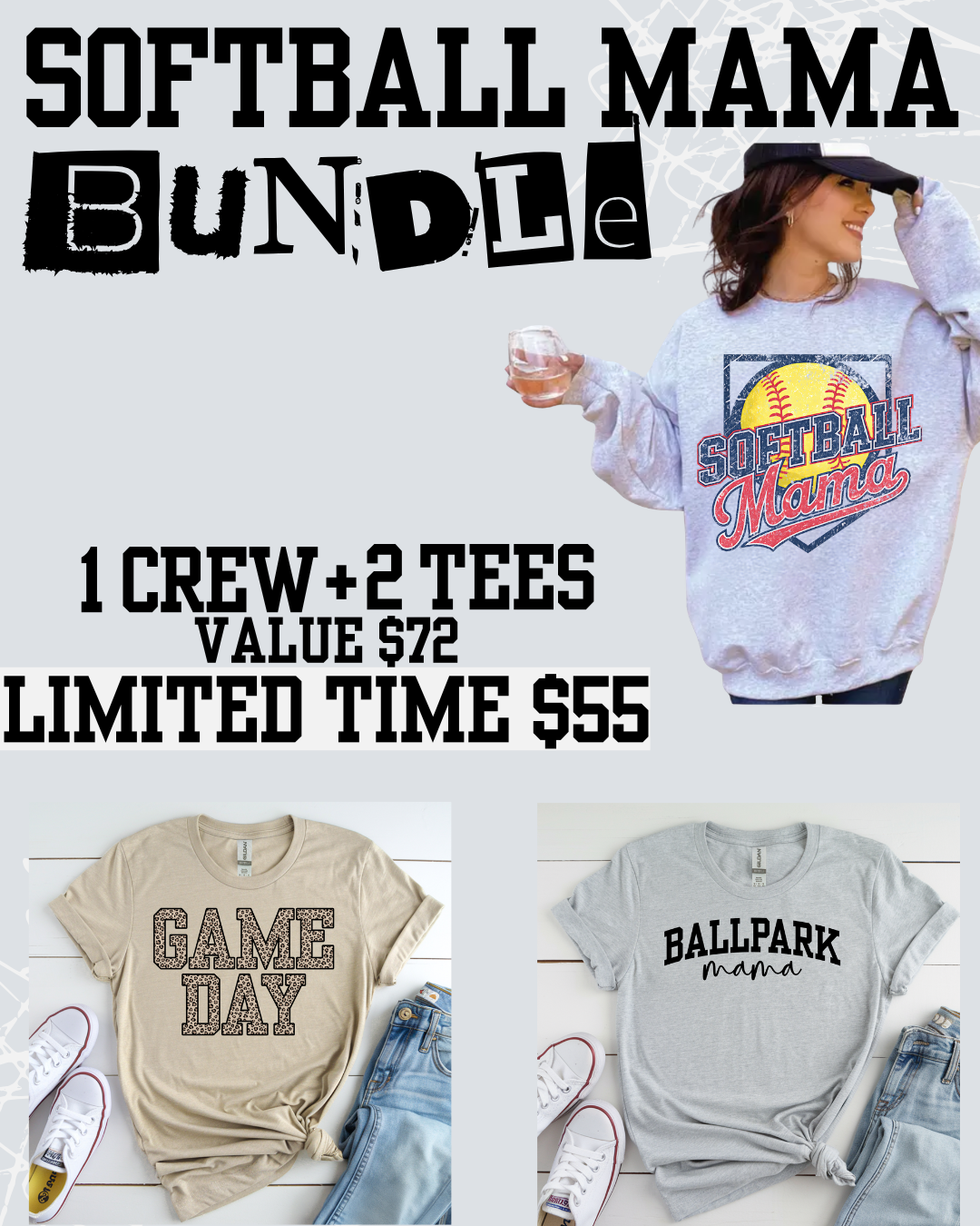 Softball Mama Bundle | Crew + 2 Tees