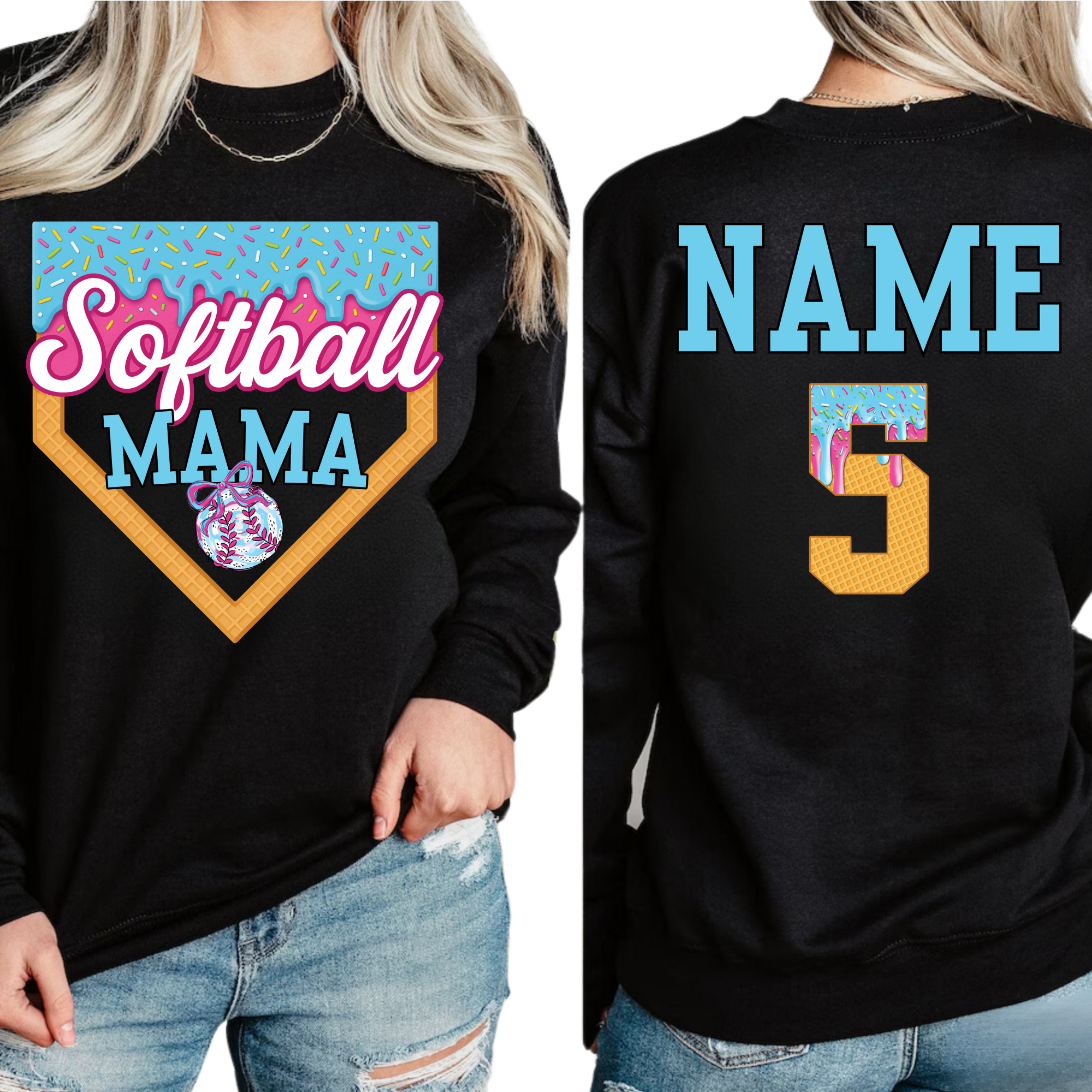 Softball Mama Personalized Blue Ice Cream Drip Shirt